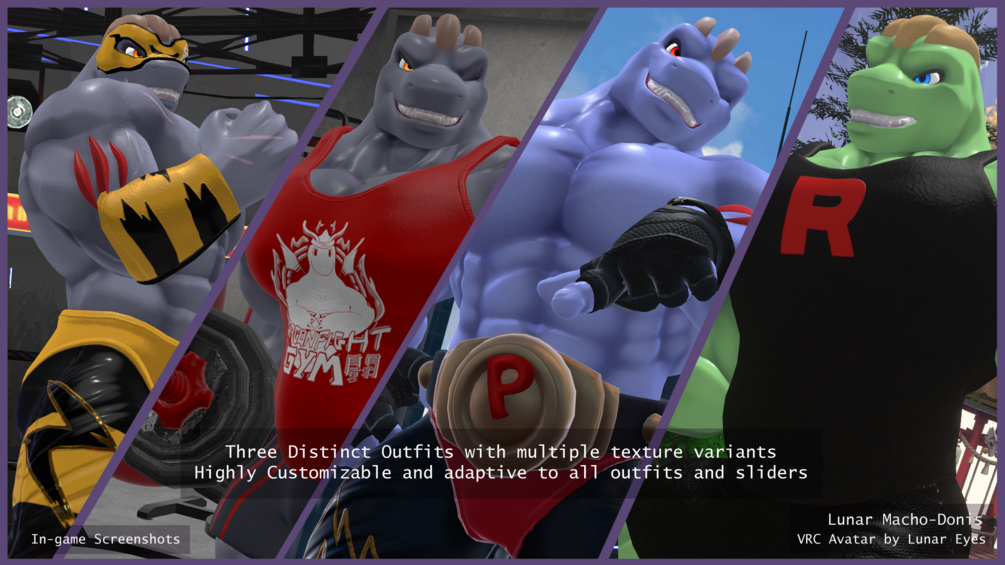Lunar Macho-Donis Unity Package, Substance Painter Files, Blend Files and Textures. Luchadonis Outfit Unity Package, Luchadonis Substance Painter File, Luchadonis Blend File, Luchadonis Textures, Workout Outfit Unity Package, Workout Outfit Blend File, Workout Outfit Substance Painter File, Workout Outfit Textures